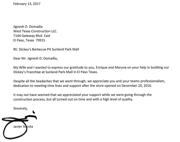 "Thank you for a beautiful Store...It's refreshing to see folks who take pride in their work. Your crew are quite the professionals. Thanks for a great job." - V. Bhakta (Little Caesar)